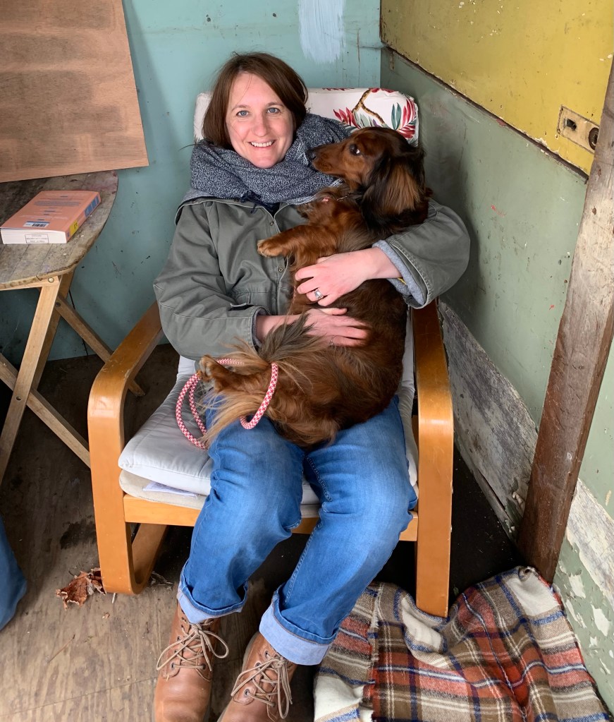 Training her to be calmer on the plot so I can use my little shed for writing and researching with my best buddy alongside me 🙂