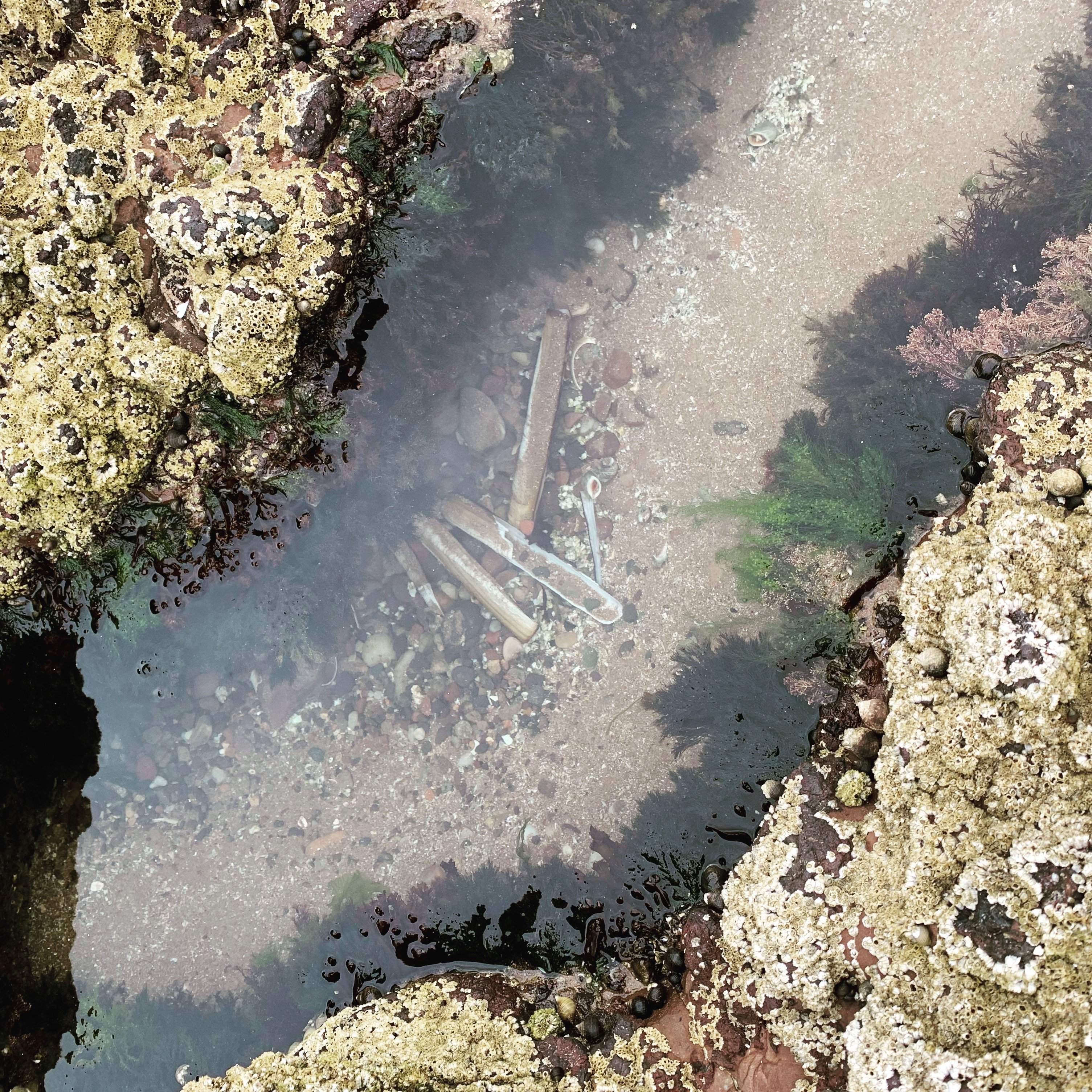 Further around the inlet the rock pools were deep and round with perfect clarity, lined with shells and fronds of jewel coloured seaweed.