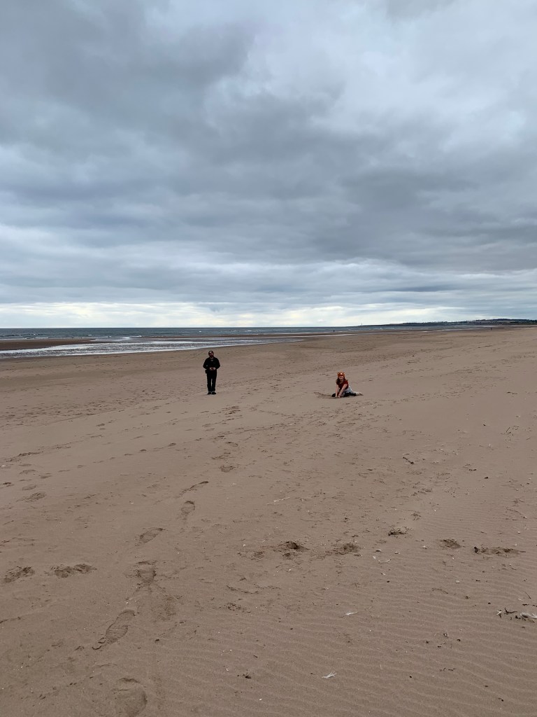 We followed a track that took us from the road across a wooden footbridge and sand dunes to the beautiful wind swept beach of St Cyrus. We weren’t expecting the vast stretch of sand before us, but there was also another surprise that was one of the strangest things I have ever seen in my life.