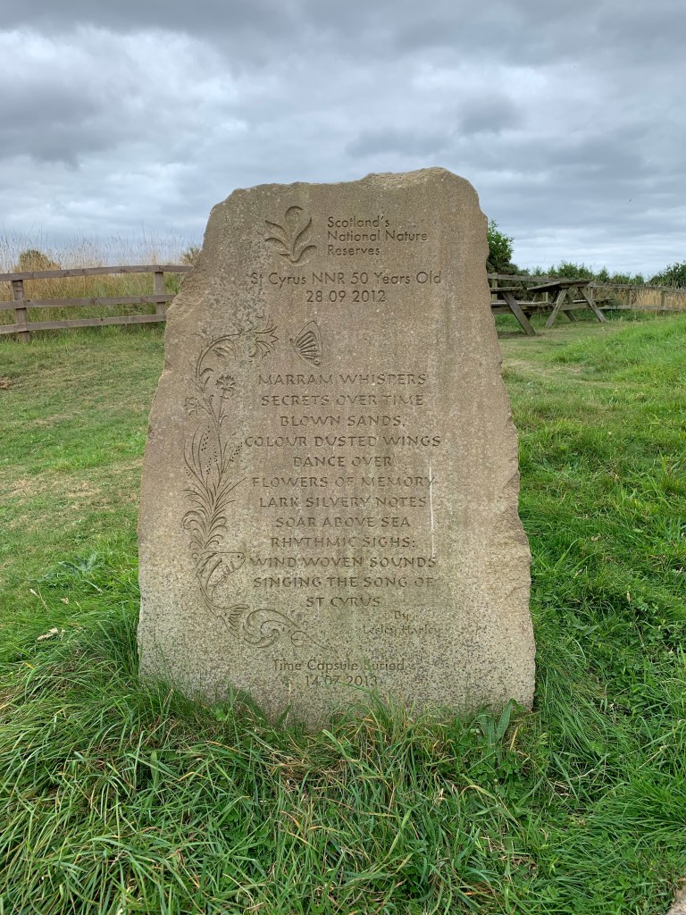 At the end of the walk, we found the visitor Center with a poem carved into stone marking the placement of a time capsule. If I could bottle St Cyrus and take a lung full of sea air whenever I felt like it, I would have done so!